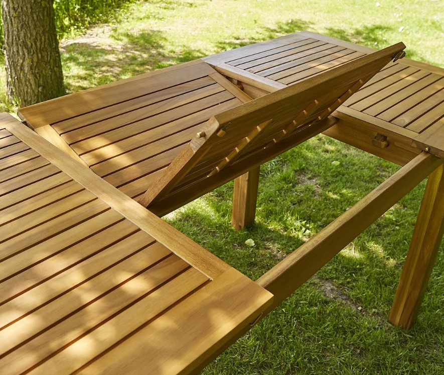 Table de jardin extensible rectangulaire en bois d'acacia 6 à 8 places