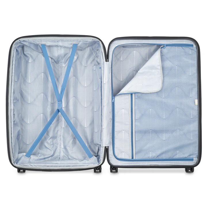 L'intérieur des valises FREESTYLE a été confectionné en rPET : une matière issue de bouteilles plastiques 100% recyclées ! Les bagages offrent un compartiment avec sangles ajustables pour y ranger un maximum d'affaires en optimisant l'espace disponible.