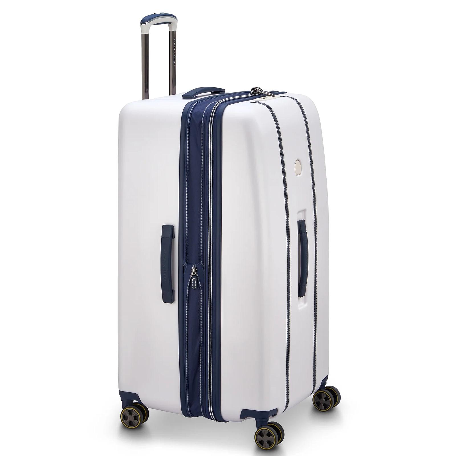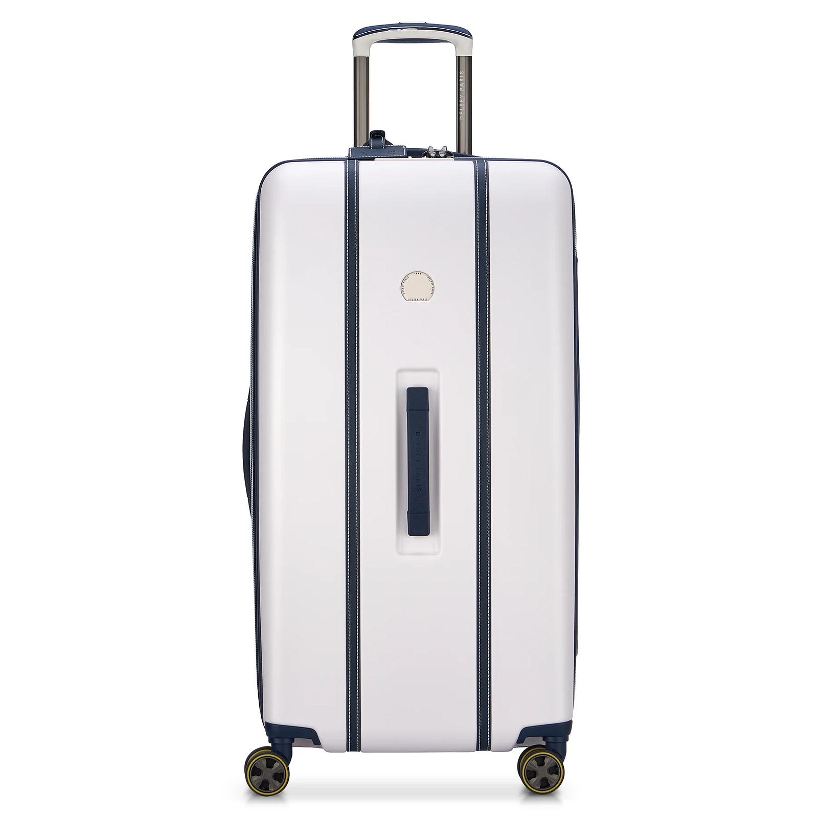 Cette valise sout XL Trunk de Delsey incarne l’élégance moderne avec son design épuré rehaussé de détails façon cuir. Son format "trunk" vertical, inspiré des malles de voyage classiques, offre une silhouette unique et une capacité impressionnante, idéale pour les longs séjours. Avec son coloris ivoire, elle allie style et fonctionnalité pour les voyageurs exigeants.