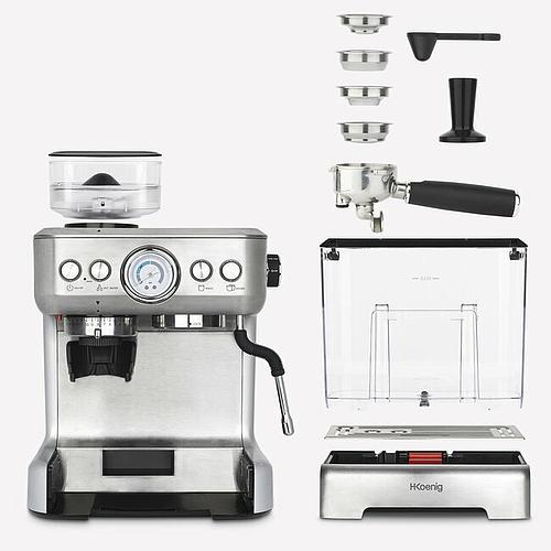 Accessoires : 2 filtres en acier inoxydable simple et double, 2 filtres pressurisés en acier inoxydable simple et double, cuillère à mesure,  tasseur à café