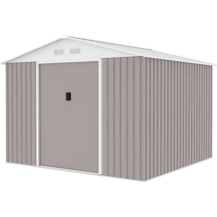 Abri de jardin en acier galvanisé avec kit d'ancrage inclus - 8.84m² - avec 2 portes coulissantes et une serrure