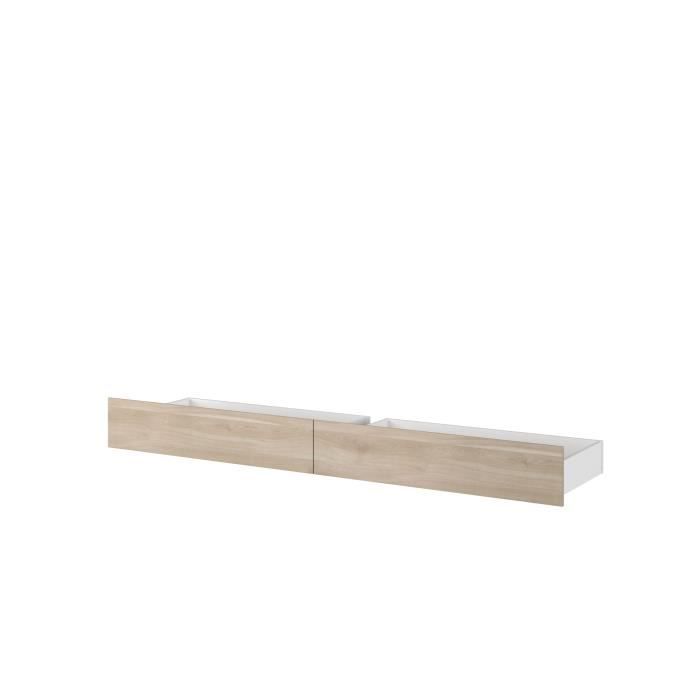 • Pied de lit : 2 tiroirs de rangement sur roulettes. Dimensions 1 tiroir : L.99,3 x H.22,2 x l.50,7 cm.