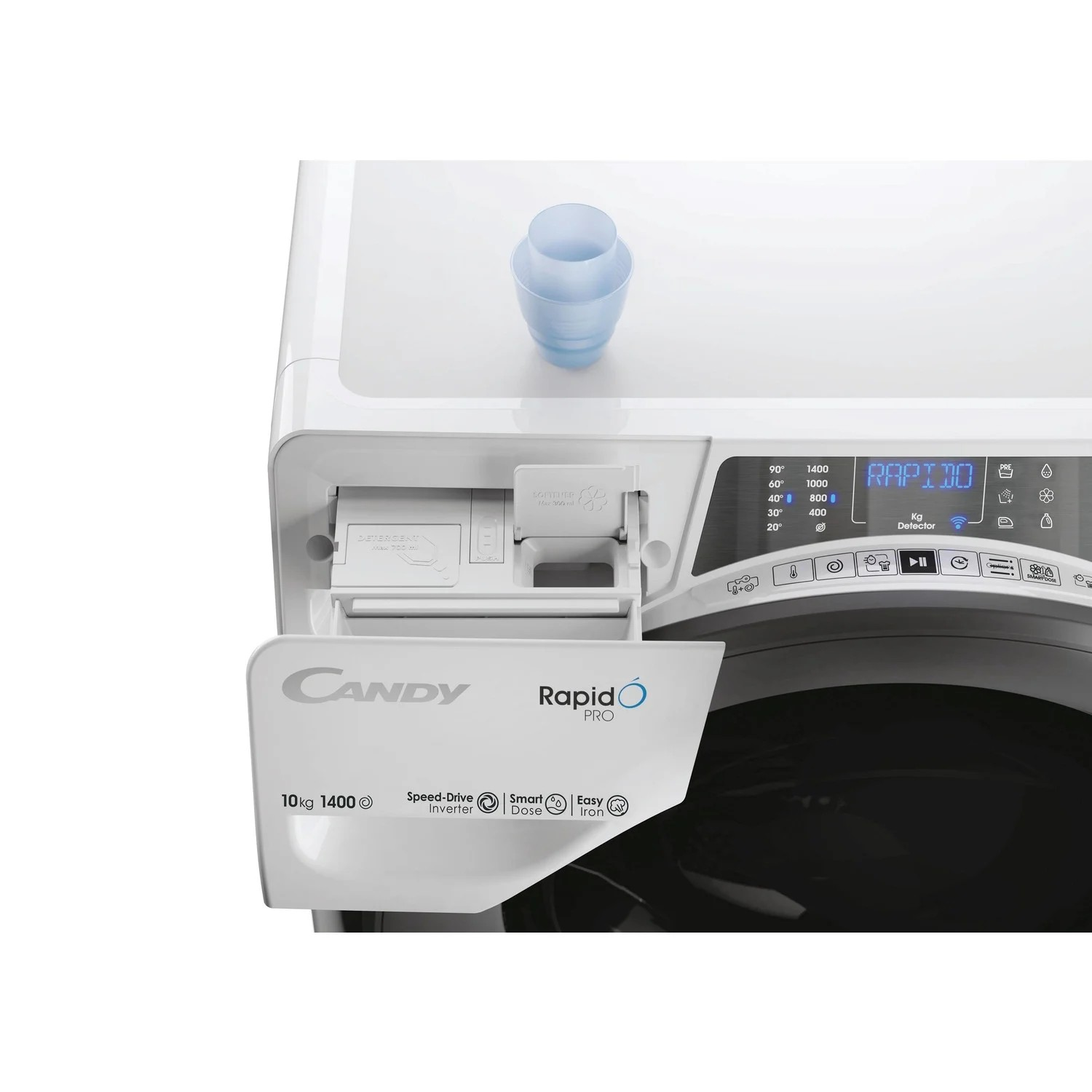 Transformez votre salle de bain avec le Lave-linge hublot Candy. Ce modèle de 10 kg offre une grande capacité de lavage avec un essorage rapide jusqu'à 1400 tours/min, vous permettant de gagner du temps sans compromettre les performances. Grâce à sa technologie Snap&Wash, il vous suffit de prendre une photo de vos vêtements pour que la machine suggère le programme de lavage idéal.