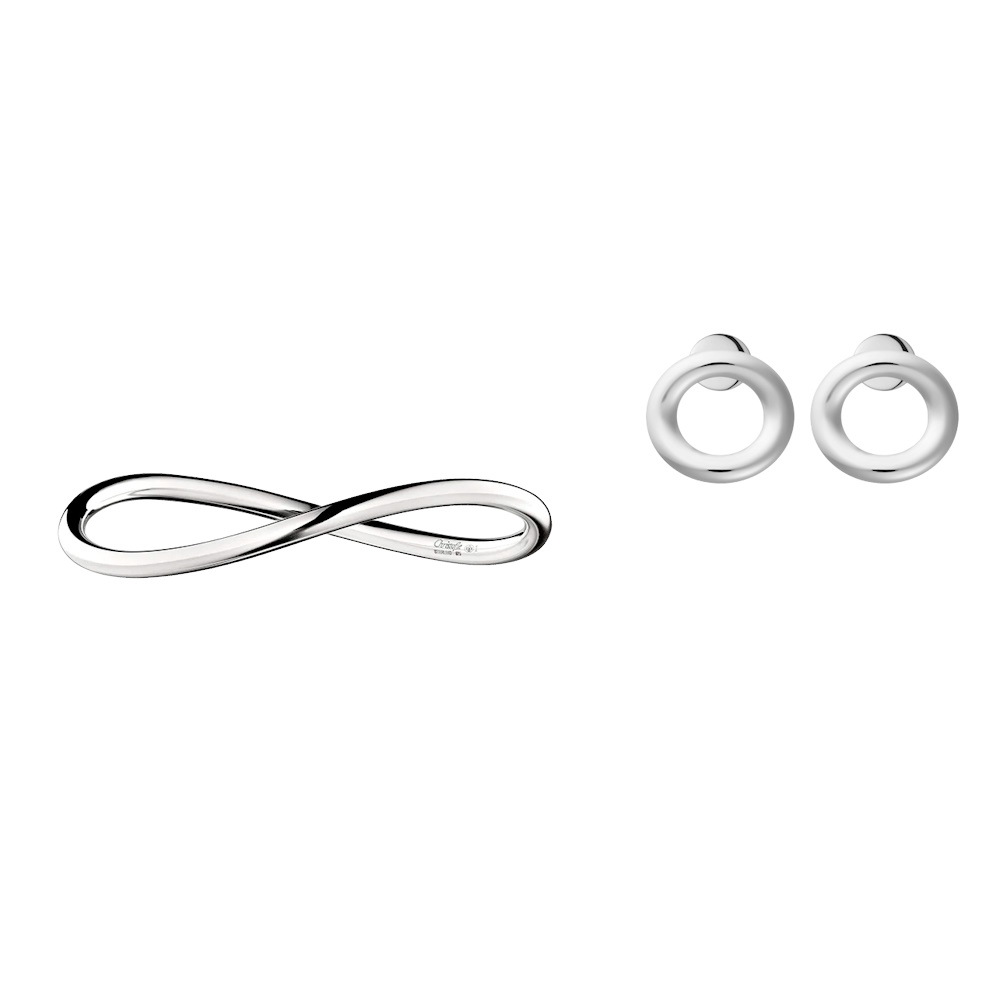 Cet ensemble Christofle, composé de puces d'oreilles en argent massif et d’un bracelet jonc fin en argent massif, est une véritable célébration de l'élégance et du design intemporel.