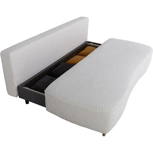 Ce canapé est bien plus qu’un simple canapé : c’est une solution complète pour les intérieurs modernes. Son revêtement bouclette texturé, doux au toucher, crée une ambiance chaleureuse et accueillante. En un geste, il se transforme en lit d’appoint confortable pour vos invités, tout en dissimulant un coffre spacieux pour ranger plaids, coussins ou linge de lit.