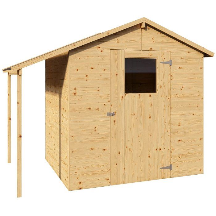 Abri de jardin en bois avec appentis - Pin brut